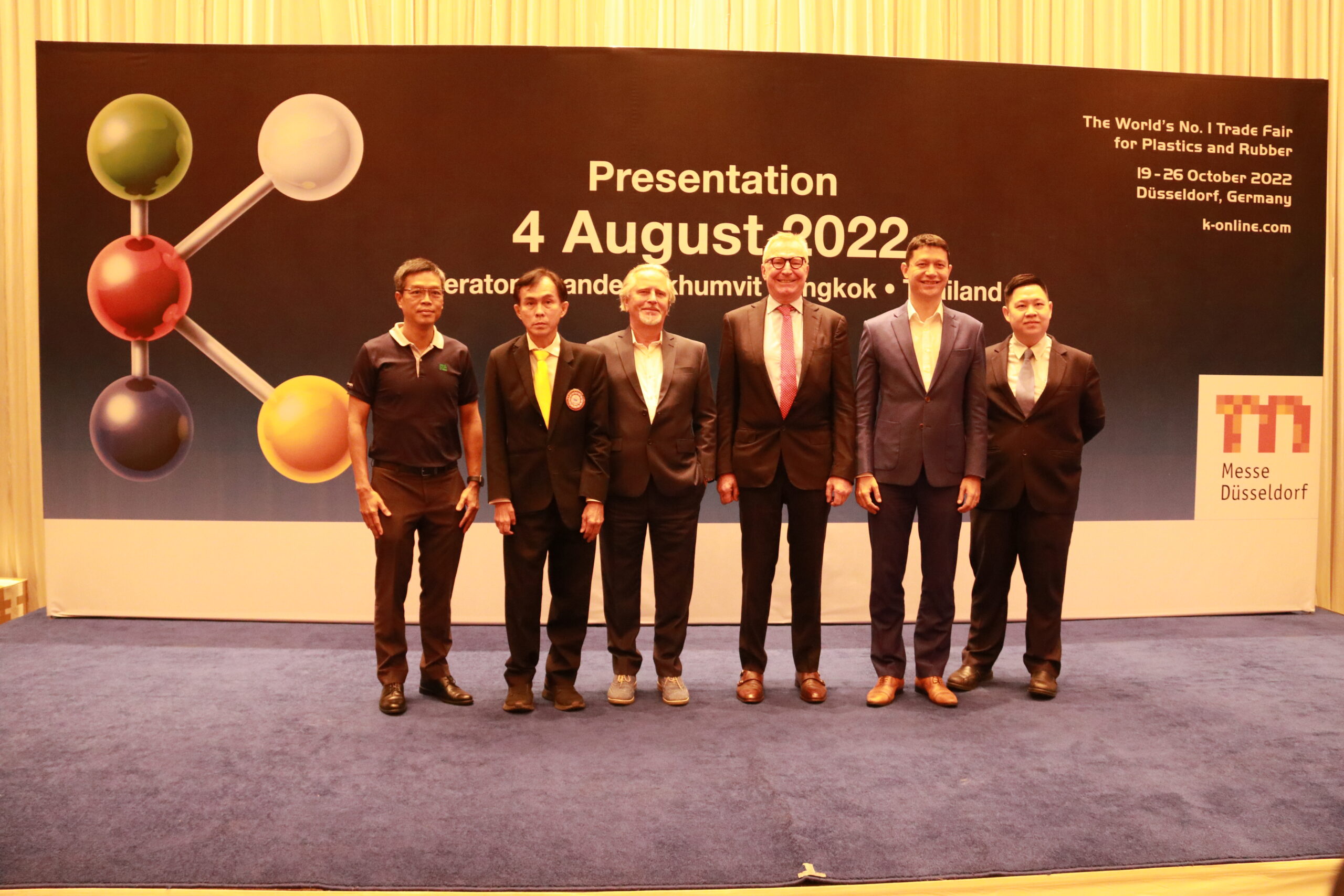 บริษัท เมสเซ่ ดุสเซลดอร์ฟ ตอกย้ำการเป็นผู้นำธุรกิจจัดแสดงสินค้าระดับนานาชาติ จัดงานสัมมนาผู้ประกอบการ "K 2022 Presentation" ณ โรงแรมเชอราตัน แกรนด์ สุขุมวิท พร้อมเปิดตัวงานนิทรรศการแสดงเทคโนโลยีและนวัตกรรมอุตสาหกรรมพลาสติกและยางครั้งยิ่งใหญ่ระดับโลกในงานมหกรรม "K 2022" ณ เมืองดุสเซลดอร์ฟ ประเทศเยอรมนี ชู 3 ไฮไลต์เมกะเทรนด์เศรษฐกิจอุตสาหกรรมแห่งโลกอนาคต ประกอบด้วยเศรษฐกิจหมุนเวียน (Circular Economy) เศรษฐกิจยุคดิจิทัล (Digitalisation) และการบริหารจัดการ และป้องกันวิกฤตสภาพภูมิอากาศ (Climate Protection) พร้อมปูทางประเทศไทยสู่ผู้นำฐานการผลิตพลาสติกและยางระดับอาเซียน โดยมี 8 บริษัทชั้นนำระดับประเทศร่วมจัดแสดงสินค้าเทคโนโลยี อาทิ บริษัท เอสซีจี เคมิคอลส์ จำกัด (มหาชน) หรือ SCGC บริษัท ไออาร์พีซี จำกัด...