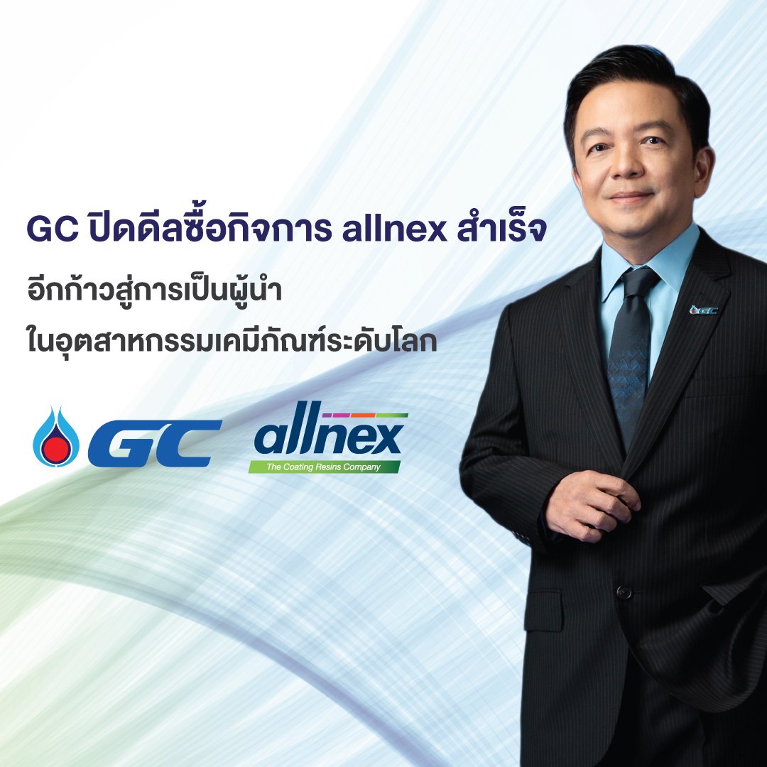 ดร. คงกระพัน อินทรแจ้ง ประธานเจ้าหน้าที่บริหารของ GC กล่าวว่า “เรารู้สึกยินดีเป็นอย่างยิ่งที่ได้ต้อนรับ allnex และสุดยอดทีมงานเข้ามาเป็นส่วนหนึ่งของครอบครัว GC อย่างเป็นทางการ โดยเราพร้อมที่จะร่วมงานกับ allnex ในการพัฒนาผลิตภัณฑ์ที่สามารถสร้างการเปลี่ยนแปลงเพื่อคุณภาพชีวิตที่ดีขึ้น และมุ่งสู่องค์กรคาร์บอนต่ำไปด้วยกัน เพื่อตอกย้ำการเป็นผู้นำด้านความยั่งยืน รวมถึงนำเสนอผลิตภัณฑ์และบริการด้วยนวัตกรรมทันสมัย เพื่อเพิ่มคุณค่าให้แก่ผลิตภัณฑ์ของลูกค้าของเรา ซึ่งทั้งหมดนี้ สอดคล้องกับความมุ่งมั่นของ GC ในการเป็น “เคมี…ที่เข้าถึงทุกความสุข”