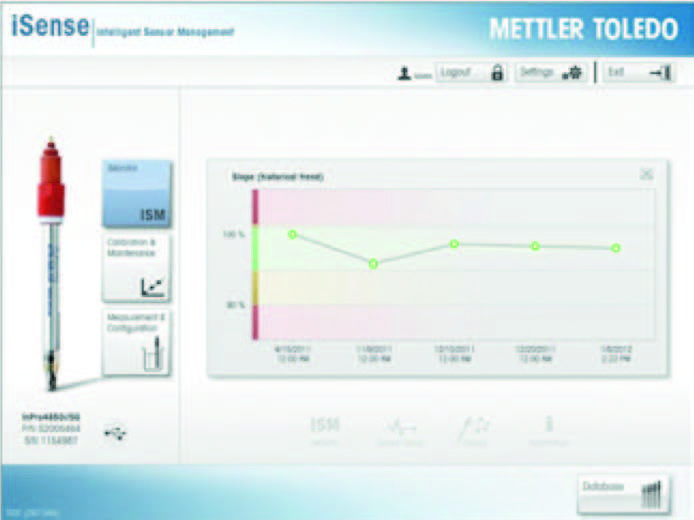 Performance charts for sensor data such as pH sensor slope, allow users to visualize unexpected changes in a probe’s status caused by adverse process conditions.