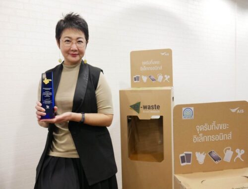 ถังรับทิ้งขยะอิเล็กทรอนิกส์ ผลงานระดับมาสเตอร์พีซ โดยเอไอเอส และกลุ่มสยามบรรจุภัณฑ์ คว้ารางวัลชนะเลิศบรรจุภัณฑ์ที่เป็นมิตรต่อสิ่งแวดล้อม Tag